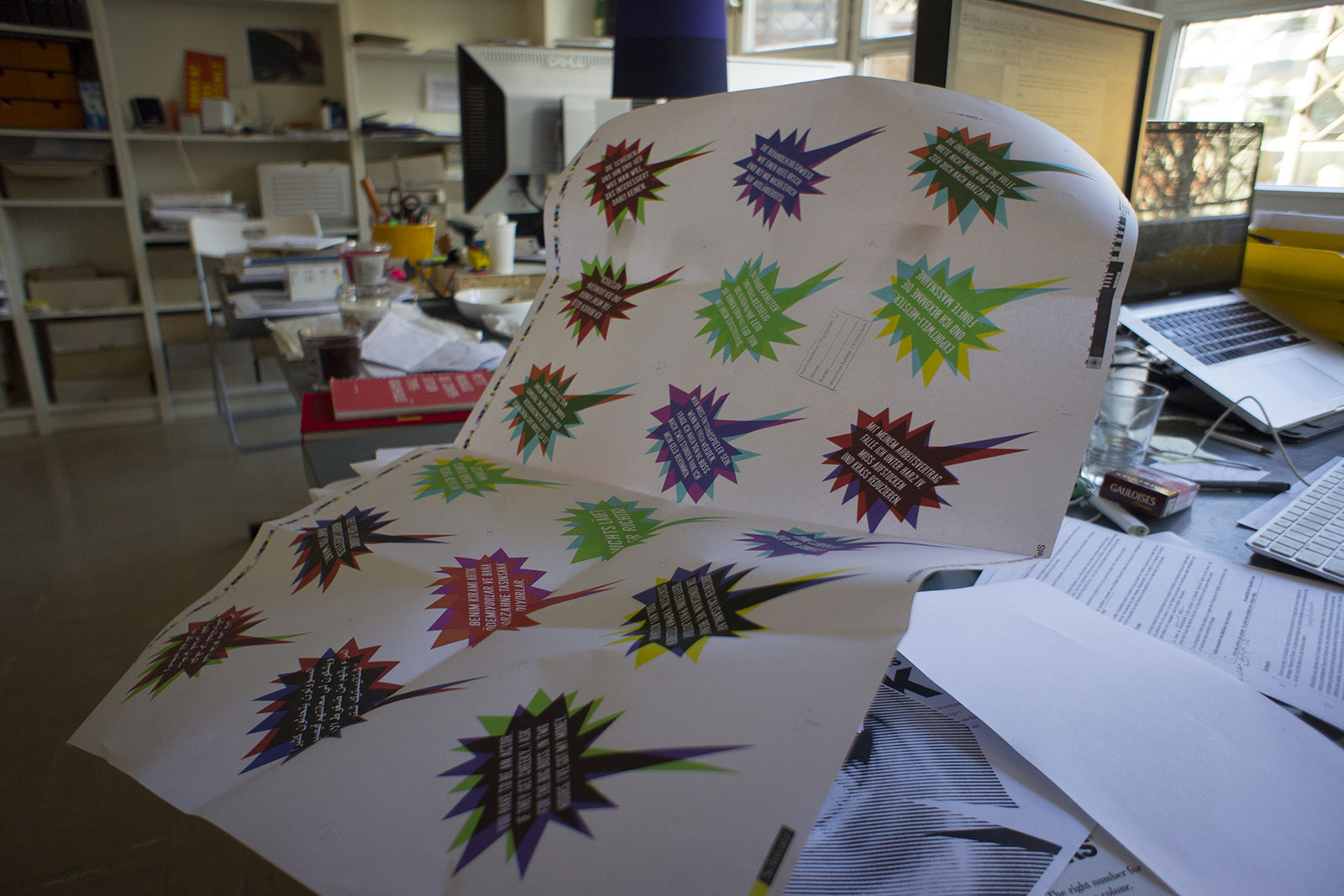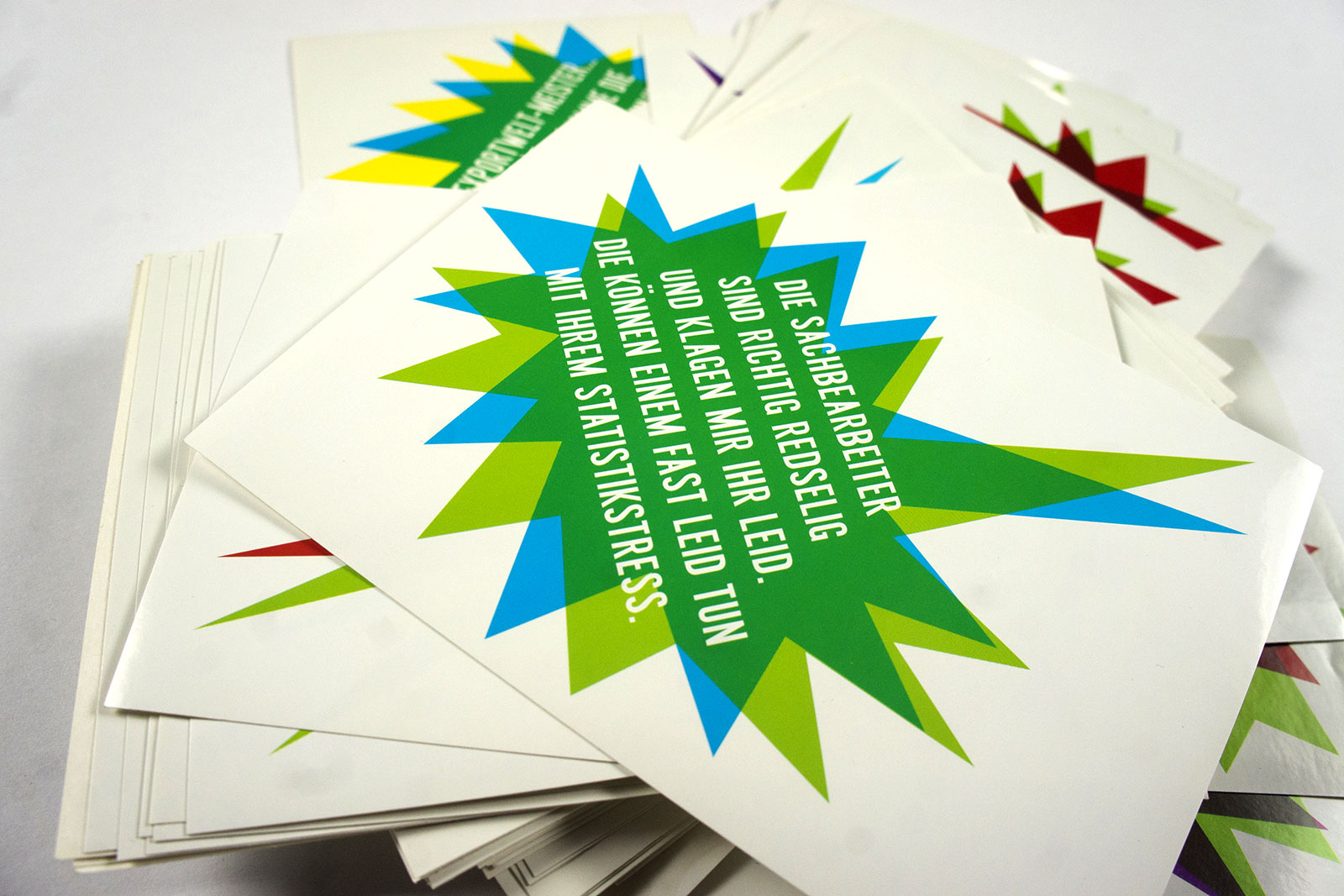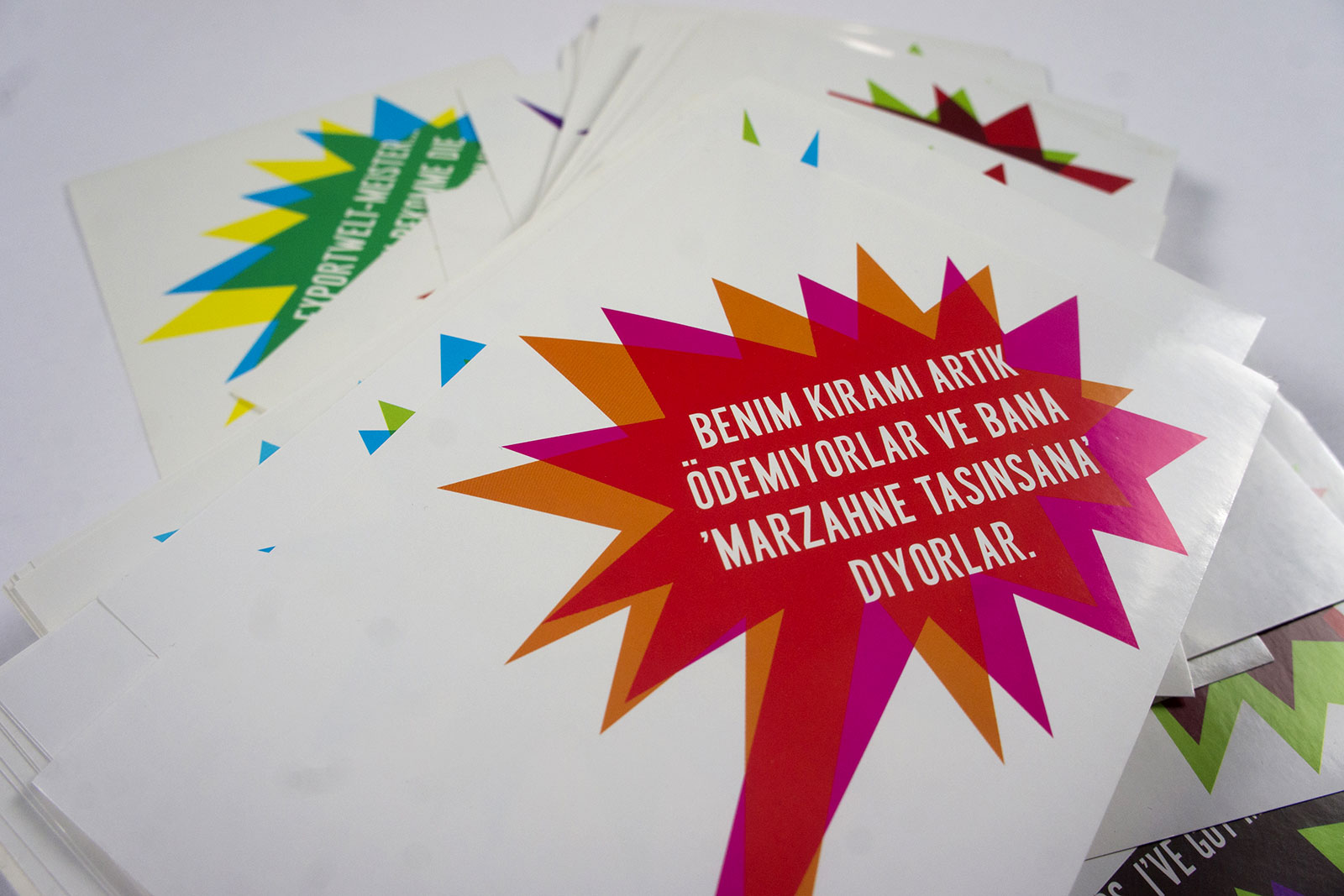 Series of 18 Stickers: CMYK, Offset Print (4 languages: GE, EN, TU, AR)