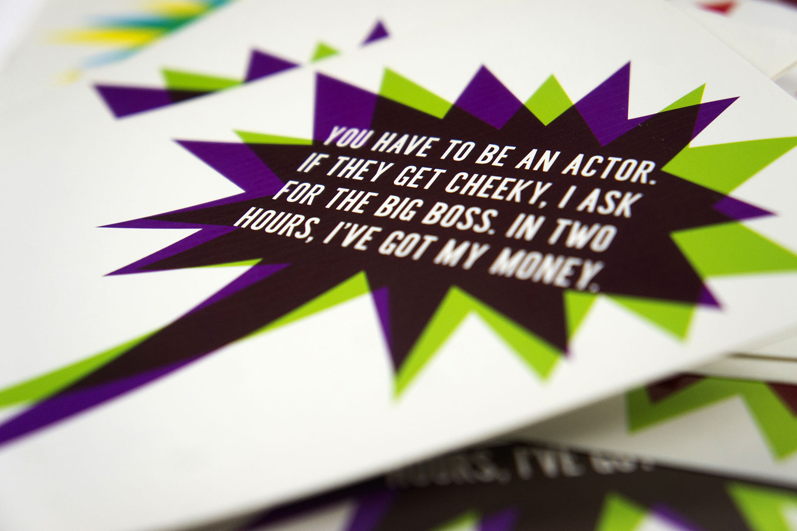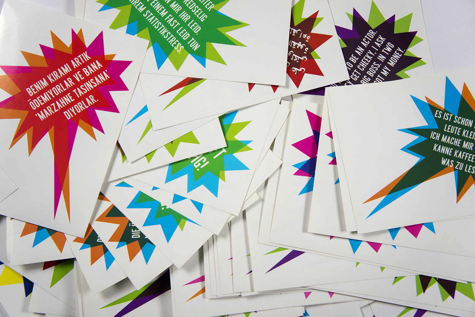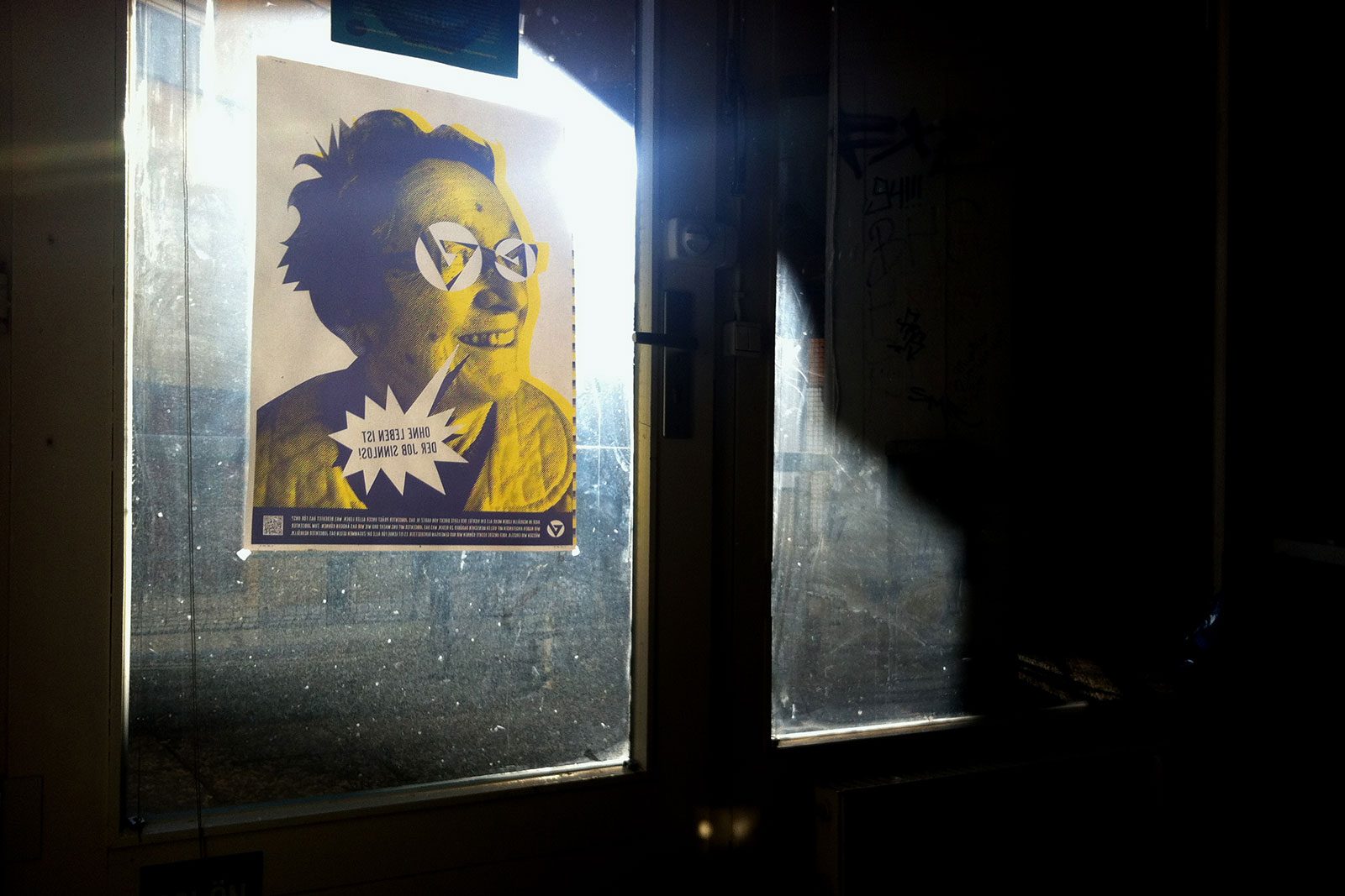 The Berlin district of Neukölln is one of the poorest in the city with 25% of its residents receiving social security (Hartz IV). This neighbourhood has experienced a wave of gentrification in recent years that has resulted in higher rents and the displacement of the poorer and marginalized. The activist group FelS focuses on the struggle against precarity and its new form in the labour market and in everyday life. In 2011 the FelS initiative “Together! Against the JobCenter Neukölln” organized a campaign against the JobCenter in the form of militant research. They collected people’s stories and experiences, conducted surveys, organized breakfast discussions, and even held an awards ceremony for the worst JobCenter “coach.” The information collected provided the basis for a series of posters and stickers.