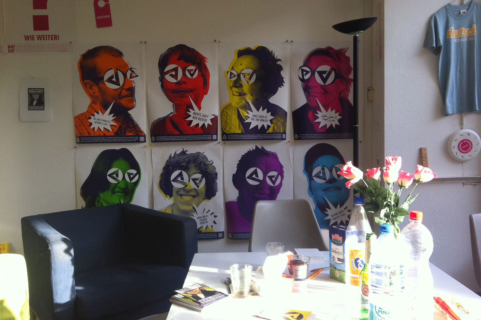 WITH: FelS (Für ein Linke Strömung/Towards a Left-Wing Current) - Initiative - Zusammen! Gegen das Jobcenter Neukölln, Drei Groschen Druck (Posters Printing), Oktoberdruck (Books and Stickers Printing), Brigitta Kuster (Text Workshop)